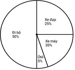 Biểu đồ dưới đây cho biết tỉ số phần trăm phương tiện tới trường của học sinh lớp 5A của một trường tiểu học. Số phần trăm của học sinh đi xe đạp tới trường là bao nhiêu ?