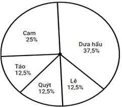 Biểu đồ dưới đây cho biết tỉ số phần trăm về các loại quả mà học sinh lớp 4C của một trường tiểu học thích ăn. Tỉ số phần trăm của các học sinh thích ăn lê là bao nhiêu?