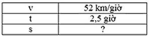 Một ô tô đi với vận tốc 55km/h. Sau 1,5 giờ ô tô đó sẽ đi được quãng đường là?
