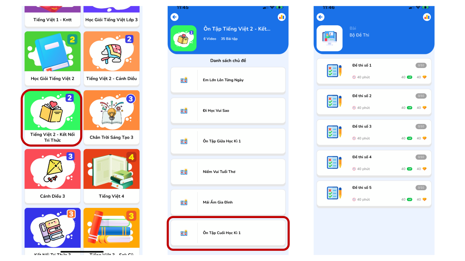 Đặc biệt phần đề thi HK1 Tiếng Việt 2 có trên App Hoc247Kids. Với bộ đề thi được chuyển thành trắc nghiệm Online giúp các con luyện tập, chấm điểm, kiểm tra lại đáp án và xem lời giải chi tiết cho từng câu. Ngoài ra các con còn tích được điểm HP và Kim cương khi luyện tập trên ứng dụng.